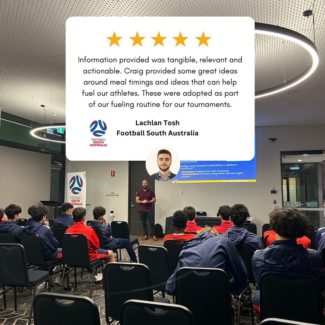 "Information provided was tangible, relevant and actionable. Craig provided some great ideas around meal timings and ideas that can help fuel our athletes. These were adopted as part of our fueling routine for our tournaments."